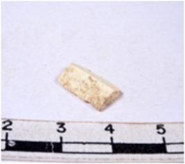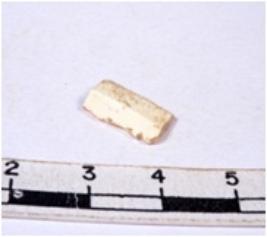 | Description / विवरण | A fragment of a rectangular shaped chert blade showing dorsal sides with sharp edges having smooth surface and triangular section. |