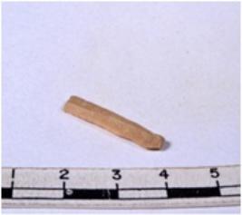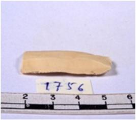 | Description / विवरण | A fragment of a rectangular shaped chert blade showing dorsal sides with sharp edges having smooth surface and triangular section. |