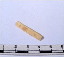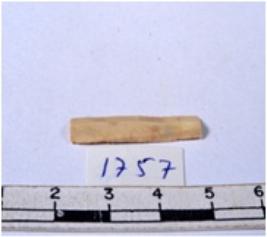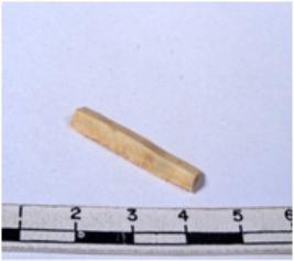 | Description / विवरण | A fragment of a rectangular shaped chert blade showing dorsal sides with sharp cutting edges having smooth surface and triangular section. |