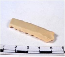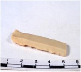 | Description / विवरण | A fragment of a rectangular shaped chert blade showing dorsal sides with sharp cutting edges having smooth surface and triangular section. |