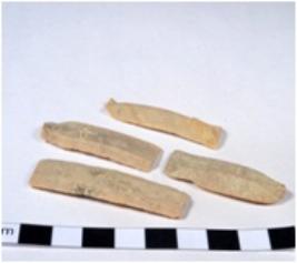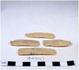 | Description / विवरण | A fragment of a rectangular shaped chert blade showing dorsal sides with sharp cutting edges having smooth surface and triangular section. |