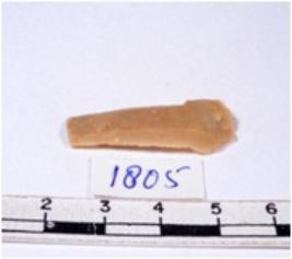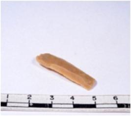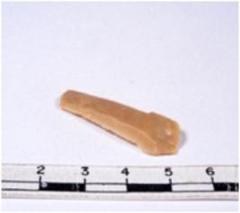 | Description / विवरण | A fragment of a rectangular shaped chert blade showing dorsal sides with sharp cutting edges having smooth surface and triangular section. |