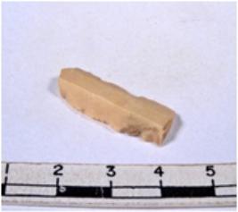 | Description / विवरण | A fragment of a rectangular shaped chert blade showing parallel sides with sharp cutting edges having smooth surface and triangular section. |