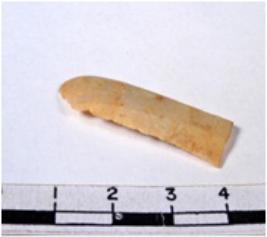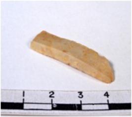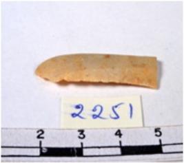 | Description / विवरण | A fragment of a rectangular shaped chert blade showing dorsal sides with sharp cutting edges having smooth surface and triangular section. |