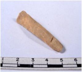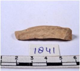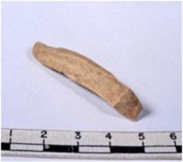 | Description / विवरण | A fragment of a rectangular shaped chert blade showing dorsal sides with sharp cutting edges having smooth surface and triangular section. |
