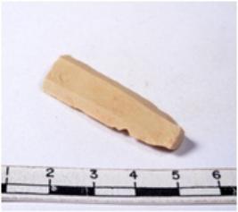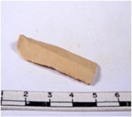 | Description / विवरण | A fragment of a rectangular shaped chert blade showing dorsal sides with sharp edges having smooth surface and triangular section. |