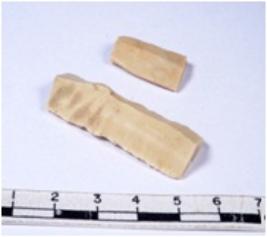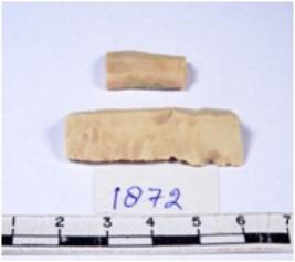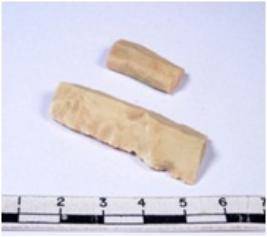| Description / विवरण | A fragment of a rectangular shaped chert blade showing dorsal sides with sharp edges having smooth surface and triangular section. |
