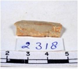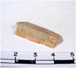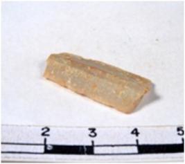 | Description / विवरण | A fragment of a rectangular shaped chert blade showing dorsal sides with sharp cutting edges having smooth surface and triangular section. |