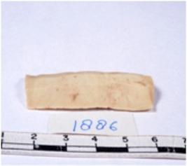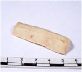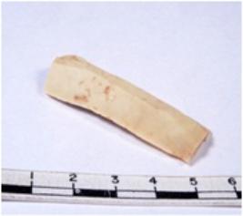 | Description / विवरण | A fragment of a rectangular shaped chert blade showing dorsal sides with sharp edges having smooth surface and triangular section. |