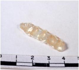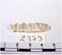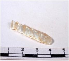 | Description / विवरण | A fragment of a rectangular shaped chert blade showing dorsal sides with sharp edges having smooth surface and triangular section. |