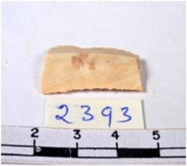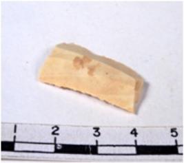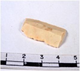 | Description / विवरण | A fragment of a rectangular shaped chert blade showing dorsal sides with sharp cutting edges having smooth surface and uneven section. |