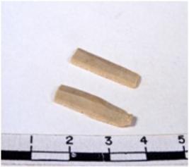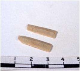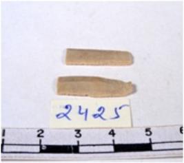 | Description / विवरण | A fragment of a rectangular shaped chert blade showing parallel sides with sharp edges having smooth surface and triangular section. |