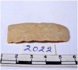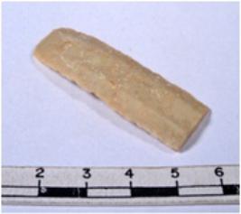 | Description / विवरण | A fragment of a rectangular shaped chert blade showing parallel sides with sharp edges having smooth surface and uneven section. |