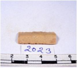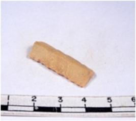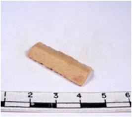 | Description / विवरण | A fragment of a rectangular shaped chert blade showing parallel sides with sharp edges having smooth surface and triangular section. |