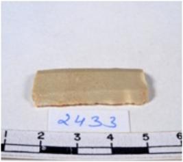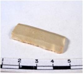 | Description / विवरण | A fragment of a rectangular shaped chert blade showing dorsal sides with sharp edges having smooth surface and triangular section. |