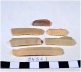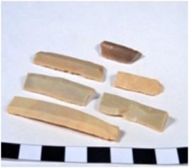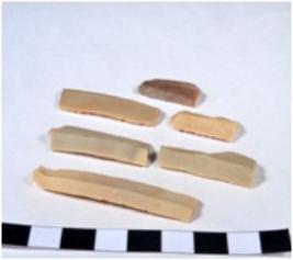 | Description / विवरण | A fragment of a rectangular shaped chert blade showing dorsal sides with sharp edges having smooth surface and triangular section. |