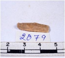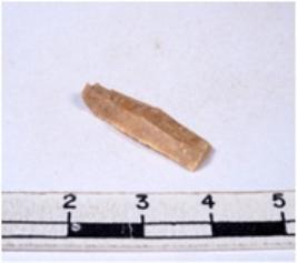 | Description / विवरण | A fragment of a rectangular shaped chert blade showing parallel sides with sharp edges having smooth surface and triangular section. |