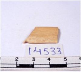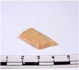 | Description / विवरण | A fragment of a rectangular shaped chert blade showing dorsal sides with sharp edges having smooth surface and triangular section. |