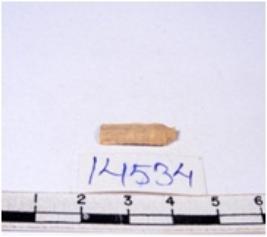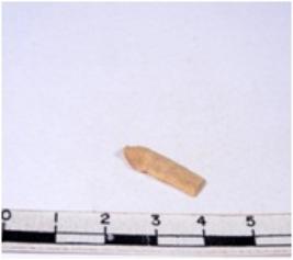 | Description / विवरण | A fragment of a rectangular shaped chert blade showing dorsal sides with sharp edges having smooth surface and triangular section. |