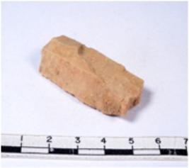 | Description / विवरण | A fragment of a rectangular shaped chert blade showing dorsal sides with sharp edges having smooth surface and triangular section. |