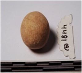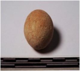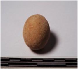 | Description / विवरण | A terracotta sling ball, round in shape of smooth surface. |