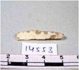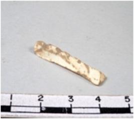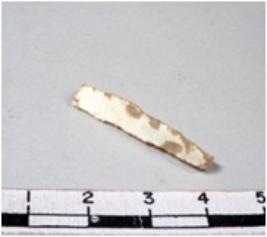 | Description / विवरण | A fragment of a rectangular shaped chert blade showing dorsal sides with sharp edges having smooth surface and triangular section. |