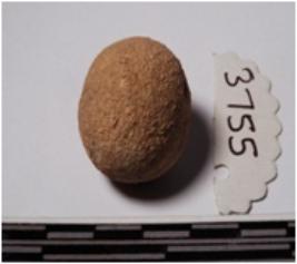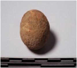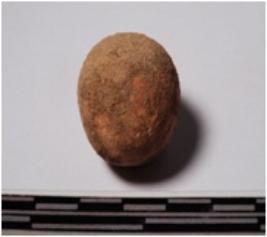 | Description / विवरण | A terracotta sling ball round in shape of smooth surface. |