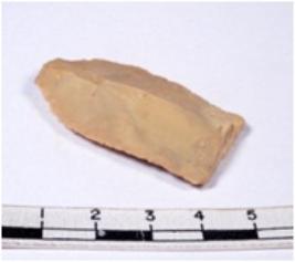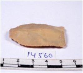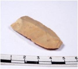 | Description / विवरण | A fragment of a rectangular shaped chert blade showing dorsal sides with sharp cutting edges having smooth surface and triangular section. |