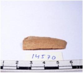 | Description / विवरण | A fragment of a rectangular shaped chert blade showing dorsal sides with sharp edges having smooth surface and triangular section. |