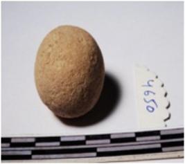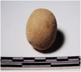 | Description / विवरण | A terracotta sling ball round in shape of smooth surface. |