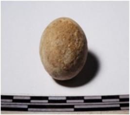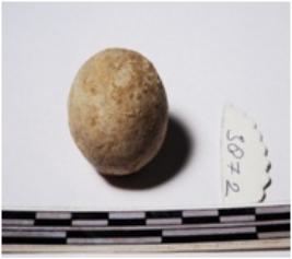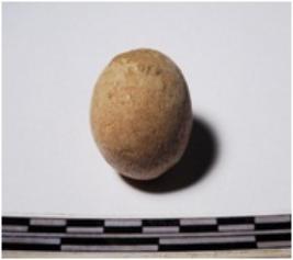 | Description / विवरण | A terracotta sling ball round in shape of smooth surface. |