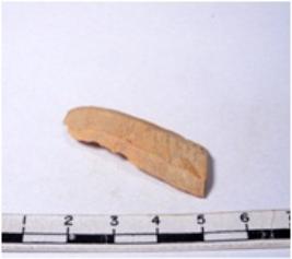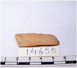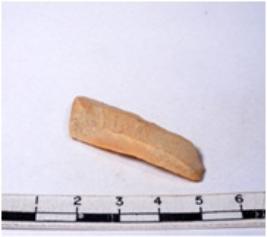 | Description / विवरण | A fragment of a rectangular shaped chert blade showing dorsal sides with sharp edges having smooth surface and triangular section. |