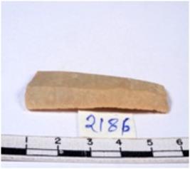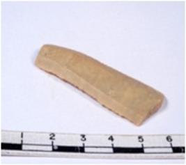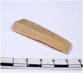 | Description / विवरण | A fragment of a rectangular shaped chert blade showing dorsal sides with sharp edges having smooth surface and triangular section. |