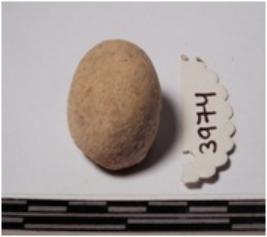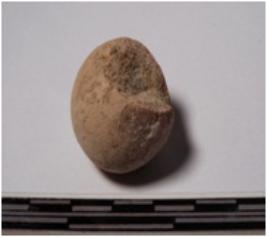 | Description / विवरण | A terracotta round in shape sling ball of smooth surface. |