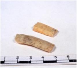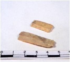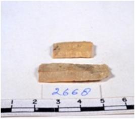 | Description / विवरण | A fragment of a rectangular shaped chert blade showing dorsal sides with sharp cutting edges having smooth surface and triangular section. |