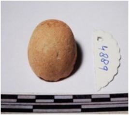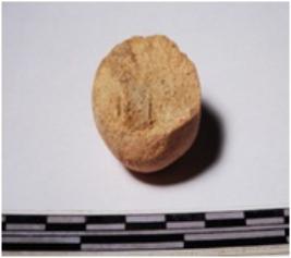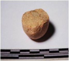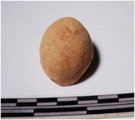 | Description / विवरण | A fragment of a terracotta sling ball globular in shape of smooth surface. |