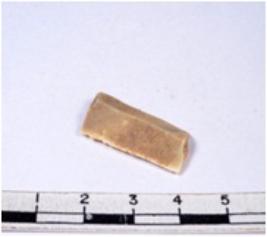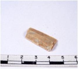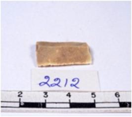 | Description / विवरण | A fragment of a rectangular shaped chert blade showing dorsal sides with sharp cutting edges having smooth surface and triangular section. |