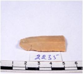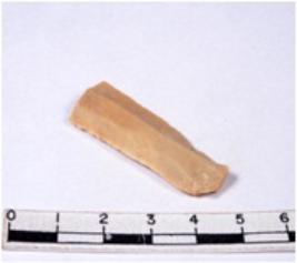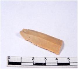 | Description / विवरण | A fragment of a rectangular shaped chert blade showing dorsal sides with sharp edges having smooth surface and triangular section. |