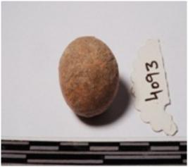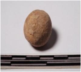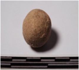 | Description / विवरण | A terracotta sling ball round in shape of smooth surface. |