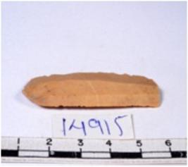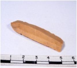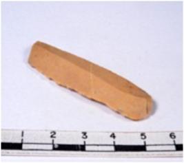 | Description / विवरण | A fragment of a rectangular shaped chert blade showing dorsal sides with sharp edges having smooth surface and triangular section. |