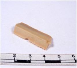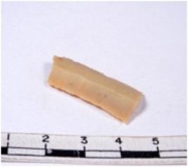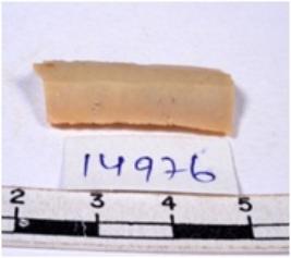 | Description / विवरण | A fragment of a rectangular shaped chert blade showing dorsal sides with sharp cutting edges having smooth surface and triangular section. |