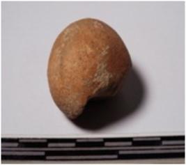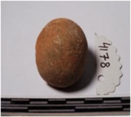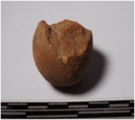 | Description / विवरण | A fragment of a terracotta sling ball round in shape of smooth surface. |