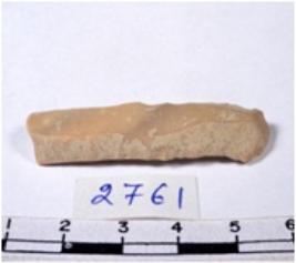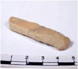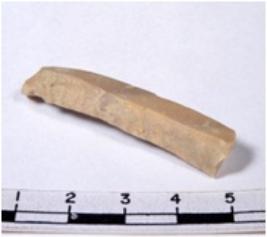 | Description / विवरण | A fragment of a rectangular shaped blade showing dorsal sides with sharp cutting edges having smooth surface and uneven section. |