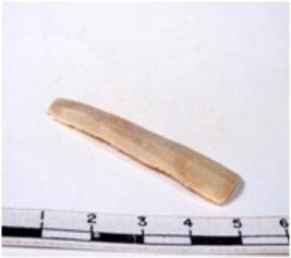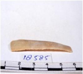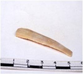| Description / विवरण | A fragment of a rectangular shaped chert blade showing dorsal sides with sharp edges having smooth surface and triangular section. |