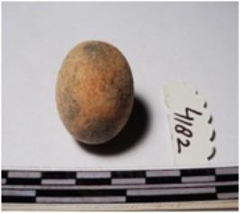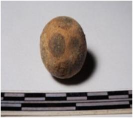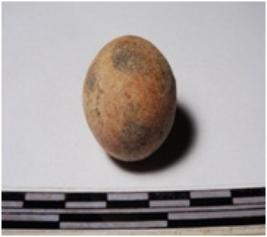 | Description / विवरण | A terracotta sling ball round in shape of smooth surface. |