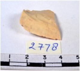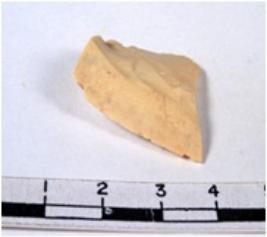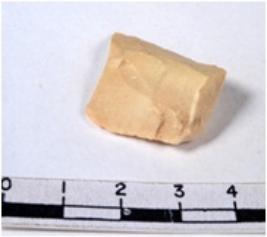 | Description / विवरण | A fragment of a rectangular shaped chert blade showing dorsal sides with sharp cutting edges having smooth surface and triangular section. |