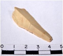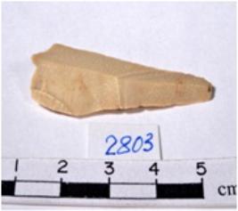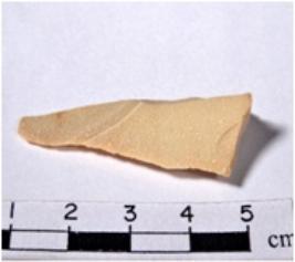 | Description / विवरण | A fragment of a triangular shaped chert blade showing dorsal sides with sharp cutting edges having smooth surface and triangular section. |