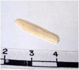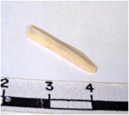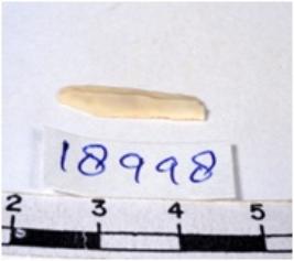 | Description / विवरण | A fragment of a rectangular shaped chert blade showing dorsal sides with sharp edges having smooth surface and triangular section. |