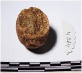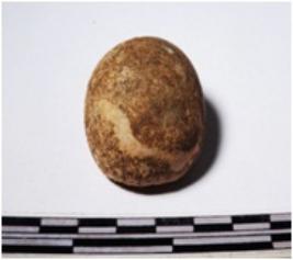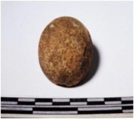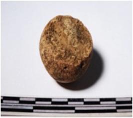 | Description / विवरण | A fragment of a terracotta sling ball round in shape of smooth surface. |