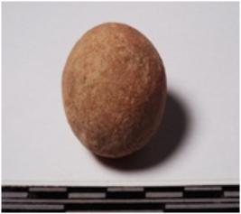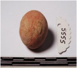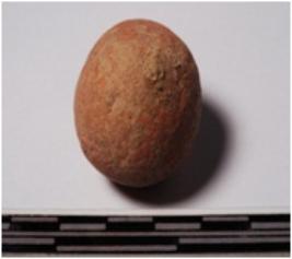 | Description / विवरण | A terracotta sling ball, round in shape of smooth surface. |